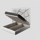 Orion is a new European collection of bedroom furniture. This bedroom set is made in modern futuristic style in white color. The incredibly beautiful pattern adorns the headboard of the eco-leather, accompanied with Gio cases. The Orion bed is available in King Size and Queen sizes, you can also choose the storage option. The bed in any configuration always features LED light in its headboard.