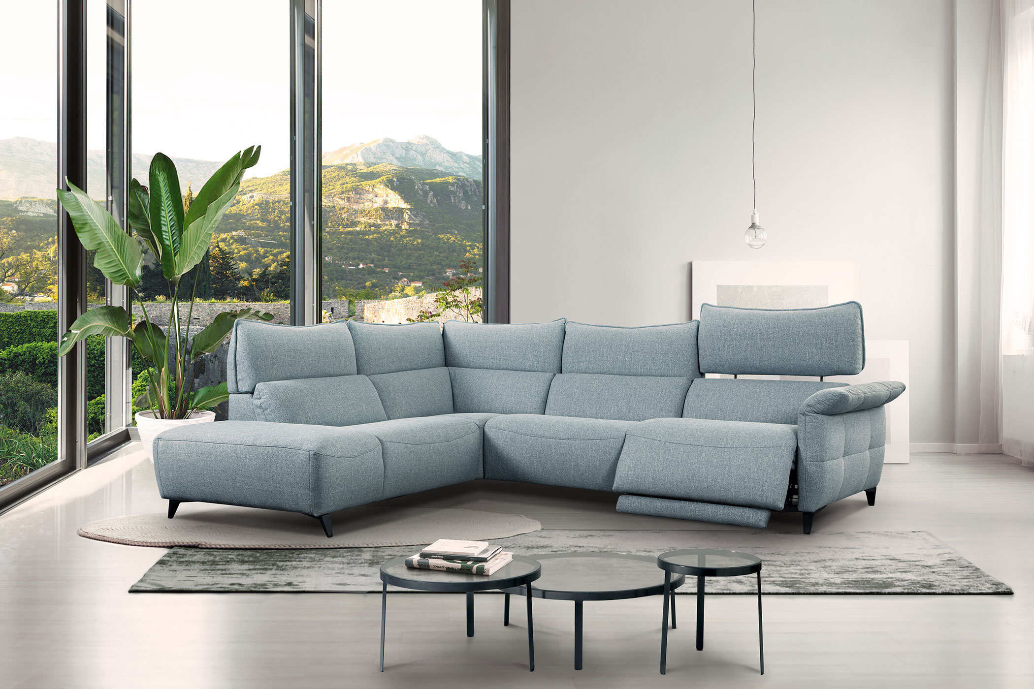 Modern design fabric sectional will fit perfectly in any interiors.